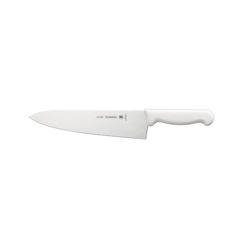 Professional Cook's Knife, 10", wide, stain-free high-carbon steel mirror-polished blade, slip-resistant, white polypropylene handle, dishwasher safe, NSF, Made in Brazil (36 each per case)