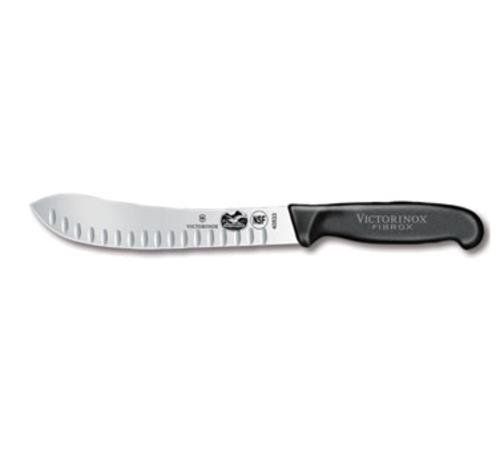 Butcher Knife, 8" granton edge (hollowed out grooved on the side of blade) black Fibrox® nylon handle, slip resistant, clamshell/peggable package, NSF