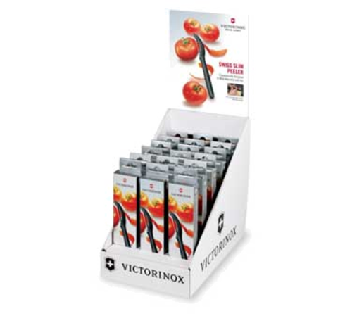 Victorinox® Universal Peeler Display, 7" x 11-1/2" x 10", 18"H with header card, includes: (18) stainless steel universal peelers, black (7.6075)