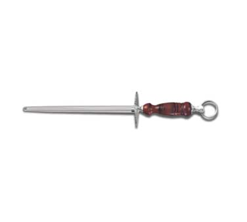Sharpening Steel, 10" regular cut, round, loose ring, dark wood handle, with hangtag