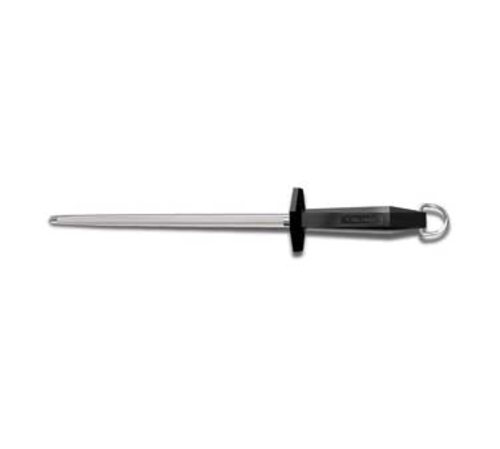 Sharpening Steel, 10" fine cut, round, loose ring, black plastic handle, with hangtag