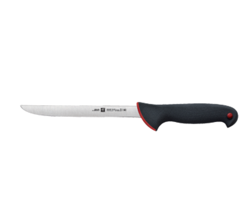 Zwilling® KolorID Filet Knife, 8", one-piece, FRIODUR® hardened, high carbon "no stain" stainless steel blade, dishwasher safe, non-hydroscopic safe-grip polypropylene handle, includes 6 color buttons: red (raw meat), yellow (cooked & smoked meats), brown (raw vegetables), blue (fish & seafood), white (bakery & dairy products), green (salads & fruits), made in Spain, HACCP & NSF approved (Special Promo NET Price) (contact factory for price)