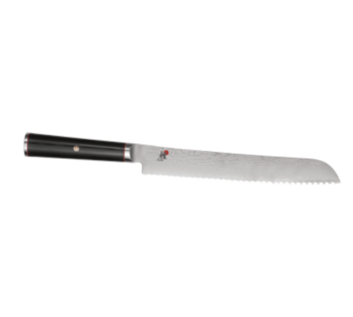 Miyabi Kaizen Bread Knife, 9-1/2", CRYODUR® hardened, VG-10 super steel blade, with 65 layer flower Damascus design, D-shape Micarta handle, black linen (contact factory for price)