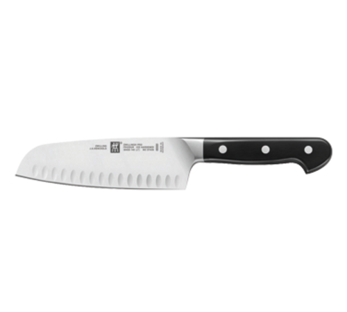 Zwilling® Pro Santoku Knife, 5-1/2", hollow edge, FRIODUR® hardened, SIGMAFORGE®, high carbon "no stain" steel blade, curved bolster, full tang, triple rivet, polymer handle, Made in Germany (contact factory for price)