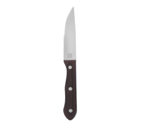 Zwilling® Jumbo Steak House Steak Knife Set, 12-piece, includes: (12) 4-1/2" serrated knives, triple rivet, one-piece, FRIODUR® hardened, high carbon "no stain" stainless steel blade, dark brown Pakkawood handles (Special Promo NET Price) (contact factory for price)