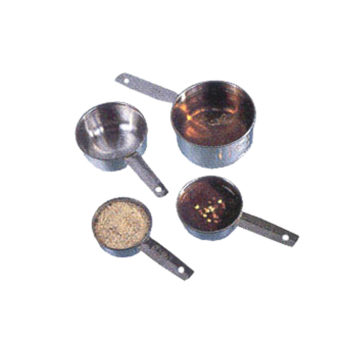 Measuring Cup Set, 1/4, 1/3, 1/2, and 1 cup, with solid flat handle, hold at tip of handle for hanging, stainless steel