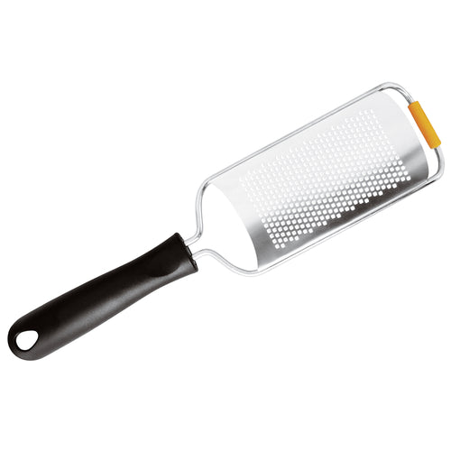 Grater, 12-1/2"L x 3"W, wide, fine, with cover, ergonomic handle, stainless steel