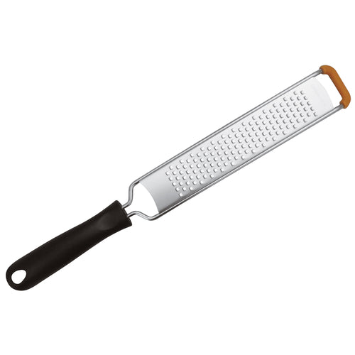 Grater, 12-1/2"L x 1-3/4"W, long, coarse, with cover, ergonomic handle, stainless steel