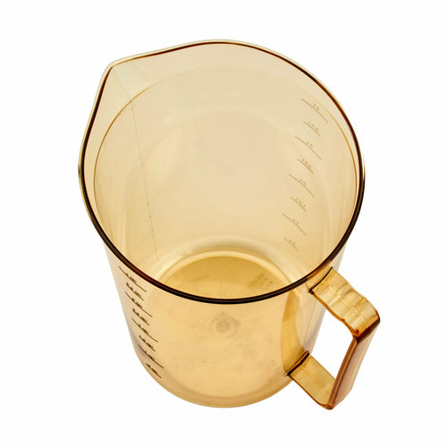 High Heat Measuring Cup, 4 qt. (128 oz.), metric and American standard graduation marks, withstands temperature -40° to 375°F (-40° to 191°C), integrated stay cool handle, microwave/oven/cooler/freezer safe, shatterproof, BPA free, plastic, amber, NSF