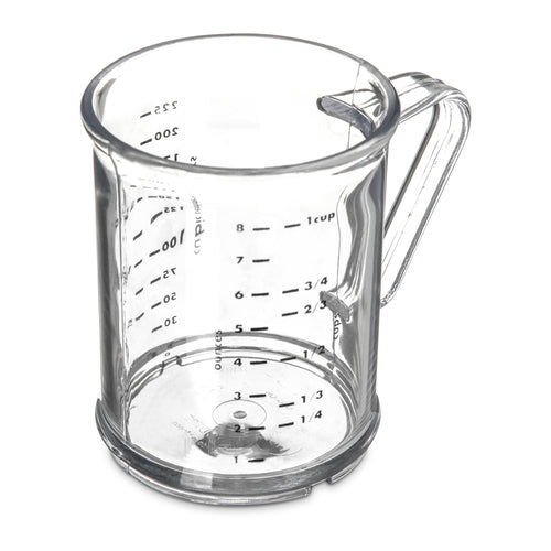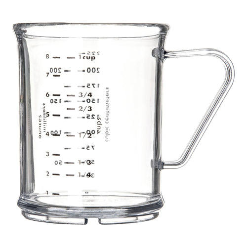 Measuring Cup, 8 oz. (1 cup) capacity, 7-style handle, once-piece construction, stain and break resistant, microwave/dishwasher safe, polycarbonate, clear