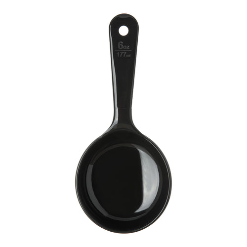 Measure Misers® Portion Spoon, 6 oz., solid, short handle, flat bottom, dry heat-resistant to 270°F, break-resistant, dishwasher safe, acetal, black, NSF, BPA Free