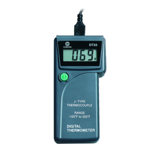 Digital Thermometer, hand-held, type J, temperature range -125° to 500°F, accuracy: ±1.3°F, interchangeable probes, water resistant, includes ATT27 probe, case & 9v battery