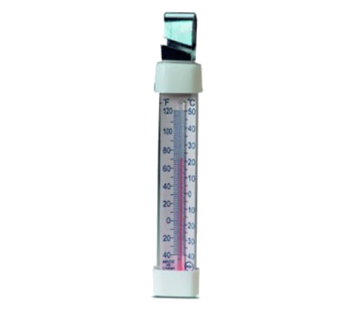 Economy Refrigerator/Freezer Thermometer, non-toxic spirit filled tube, temperature range -40° to 120°F (-40 to 50°C), end caps, hangs or mounts, NSF (must purchase in multiples of 50 each)