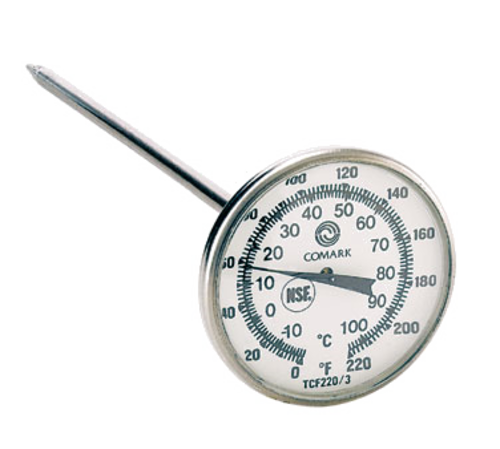 Pocket Thermometer, 1-3/4" dial, 5" stem, temperature range 0 to 220°F (-10 to 100°C), stainless steel construction with plastic watertight lens, recalibration nut, NSF (must purchase in multiples of 6 each)