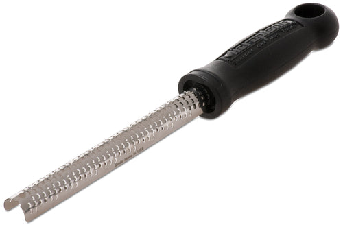 Microplane® Spice Grater, 8-1/2"L x 1"W x 1/2"H, fine blade, for grating chocolate, cinnamon, and nutmeg, includes (1) protective cover, dishwasher safe (top rack), ergonomic black plastic handle, surgical grade stainless steel blade