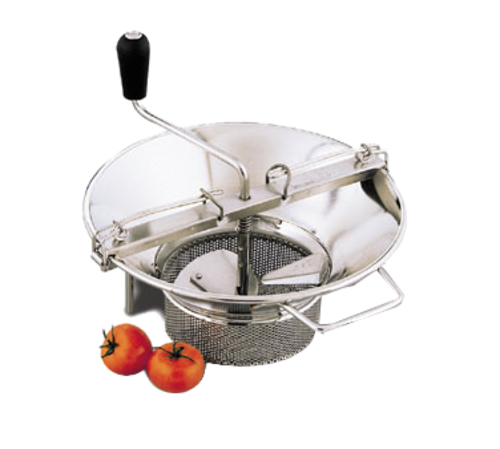 Tellier Restaurant Food Mill, 8 quart capacity, 14" top diameter, 7-1/4" bottom diameter, 14-3/4" deep, comes with one grid of choice, tin plated