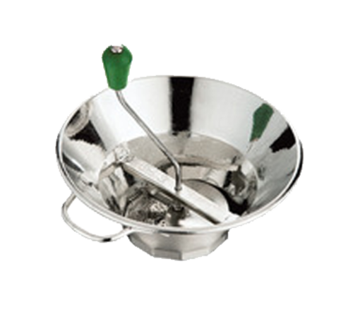 Tellier Semi Professional Food Mill, 5 quart capacity, 12" top diameter, 6" bottom diameter, 9-3/4" deep, includes 3 grids, tin plated