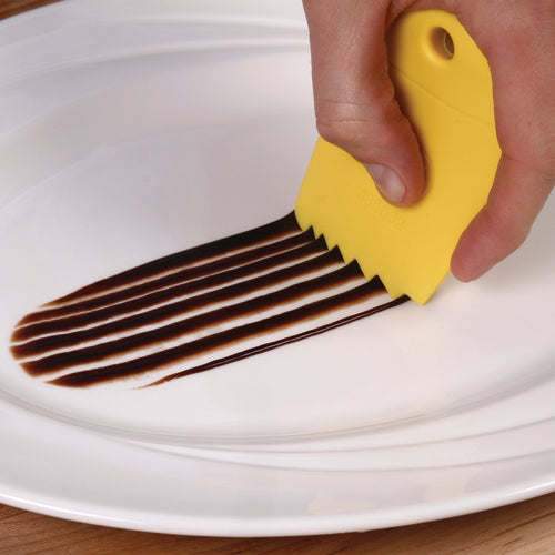Silicone Plating Wedge, graduated saw tooth, 3/4" x 2-1/2" overall dimensions, 2-1/4" wide wedge tip, recessed thumb rest, heat resistant to 480°F (250°C), color-coded for identification, hanging hole, tapered end, dishwasher safe (12 each per case)