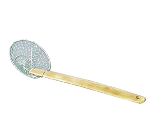 Skimmer, 4" dia, 9" bamboo handle, round, stainless steel, coarse mesh, dozen