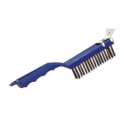 Brush/Scraper, wire, 4 rows, 4-3/8" long with 1-1/4" tempered steel bristles, 11-3/4" overall, plastic handle