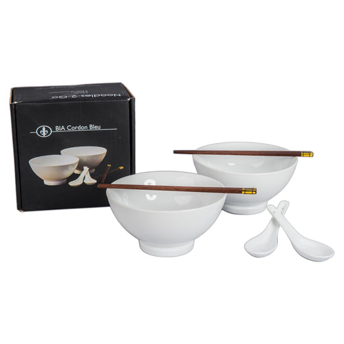 BIA Cordon Bleu® Noodles-2-Go Set, 6-piece, includes: (2) 1 qt. 7" round bowls, (2) chopstick sets & (2) spoons, dishwasher/microwave/oven safe, porcelain, white (gift boxed) (1 set minimum order) (NET)