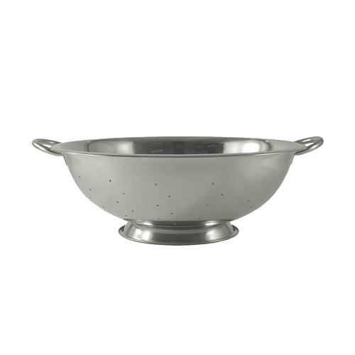 Colander, 8 qt., 13-3/8" dia. x 5-1/8"H, handled, footed, stainless steel (QTY break = 12 each)