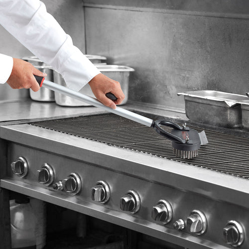Horseshoe Broiler Brush, 27-1/2" x 6-1/2" x 2-1/4" overall, with scraper, stainless steel bristles, knob on handle, 20-1/2" aluminum handle (replaceable brush head sold separately) (must be purchased in case quantities)