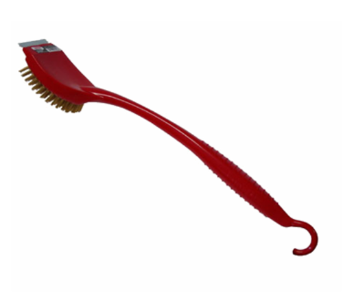BBQ Brush, red, long handle with scraper, overall length 19", brass
