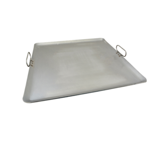 Portable Griddle Top, 23"W x 23"D, covers 4 burners, can be used on gas or electric ranges, high lip reduces spills, easy-pour corners & fold-down handles for easy storage, 7 gauge steel, NSF