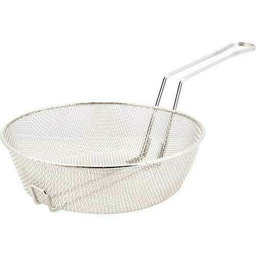 Culinary Basket, 10"OD x 3"H basket, 18"L overall, round, #8 fine mesh, nickel-plated steel