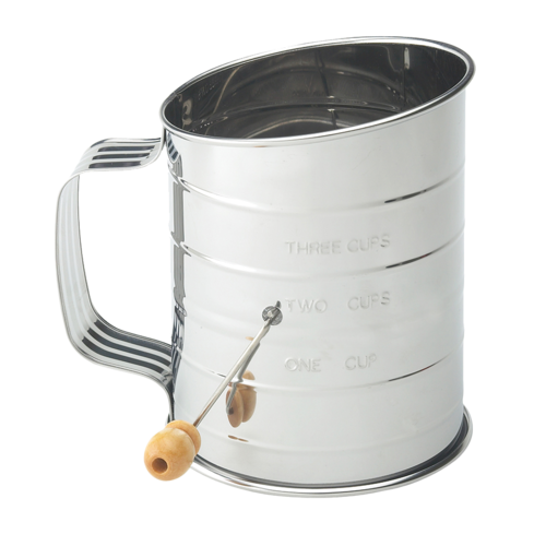 HIC Rotary Flour Sifter, 3 cup, crank handle, stainless steel