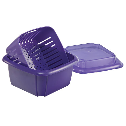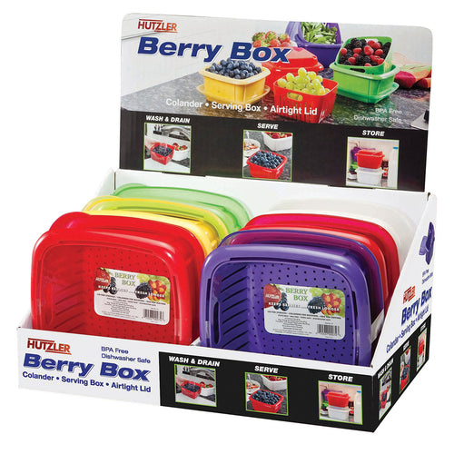 Hutzler Berry Box, all-in-one set includes: colander, serving box & lid, plastic, assorted colors (6 each total per display/case)