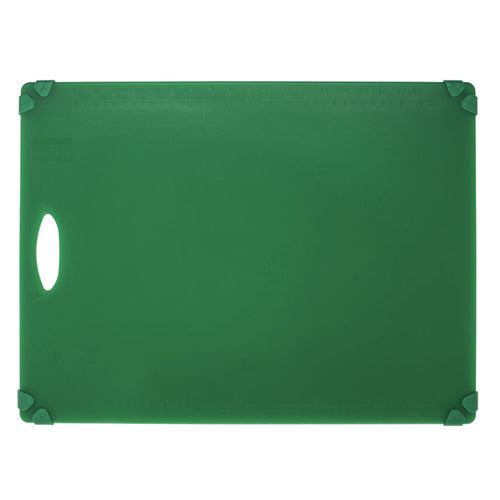 Cutting Board, 24" x 18" x 1/2"H, rectangular, embossed ruler (measures cm/in), corner grippers, cutout handle, dishwasher safe, polypropylene, green, NSF