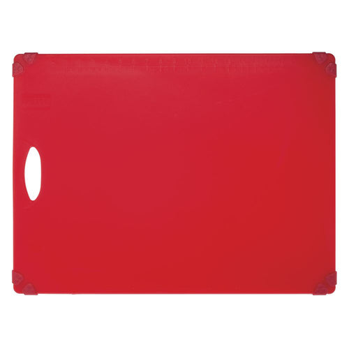 Cutting Board, 24" x 18" x 1/2"H, rectangular, embossed ruler (measures cm/in), corner grippers, cutout handle, dishwasher safe, polypropylene, red, NSF