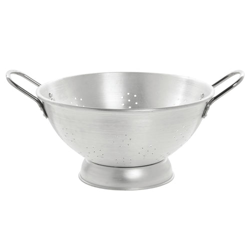 Colander, 12 qt., 15" dia. x 5-3/4"H, round, with riveted handles, full ring support base, aluminum