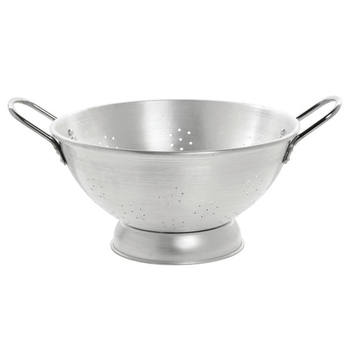 Colander, 22 qt., 19-1/2" dia., round, with riveted handles, full ring support base, aluminum
