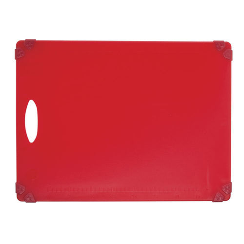 Cutting Board, 20" x 15" x 1/2"H, rectangular, embossed ruler (measures cm/in), corner grippers, cutout handle, dishwasher safe, polypropylene, red, NSF