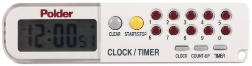 Polder 3-in-1 Timer, clock, and stopwatch, time up to 10 hours, count up to 24 hours, includes magnet, battery included, white