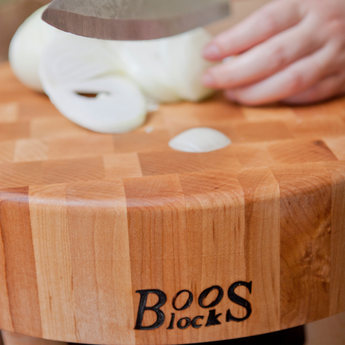 Gift Collection Cutting Board, 12" dia. x 3" thick, end grain construction, Northern Hard Rock Maple, with Oil Finish, wooden legs