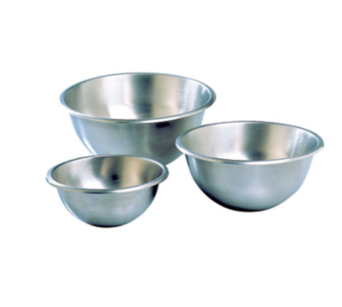 Mixing Bowl, 15.8 qt., 15-3/4" dia., hemispherical, round bottom, dishwasher safe, 18/10 stainless steel, made in France