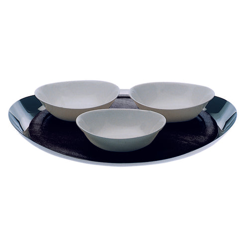 Multifunction Bowl & Tray Set, 4-piece, includes (3) 11-1/3 oz., 5-7/8" x 5-1/2" porcelain bowls and (1) oval tray, dishwasher safe, 18/10 stainless steel, Due