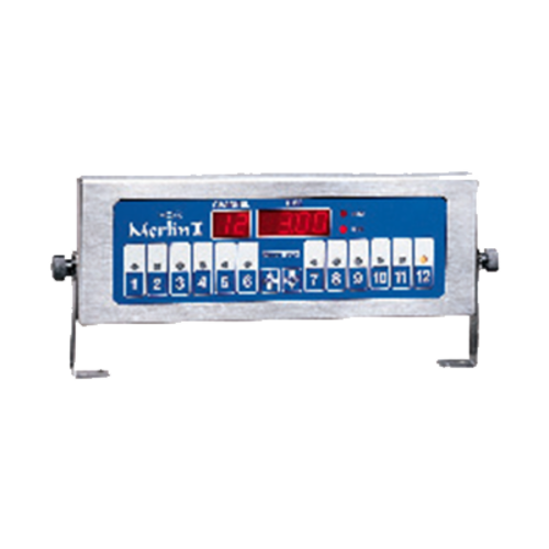 Merlin II Single Function Timer, electronic, 12-channel, single display, independently functioning programmable channels, multi colored LED channel indicators, digital channel display, dual tone alarm, includes 3-1/2" mounting brackets & menu labels, 6 ft. cord, 120-240v/50/60/1-ph, 0.83 amps, cUL, UL, CE