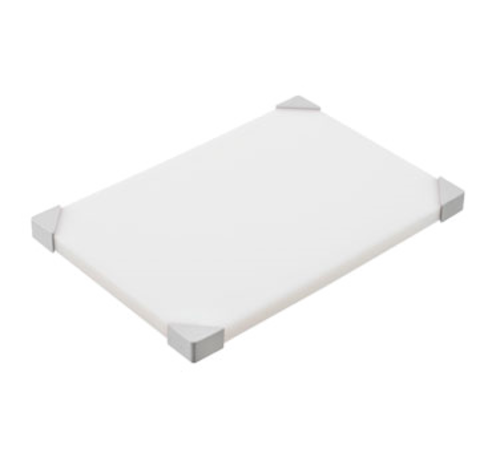 Araven Cutting Board, 12" x 8-1/8" x 3/4", high density polyethylene, white with white color coded non-slip rubber permanent corners, both sides useable, HACCP compliant