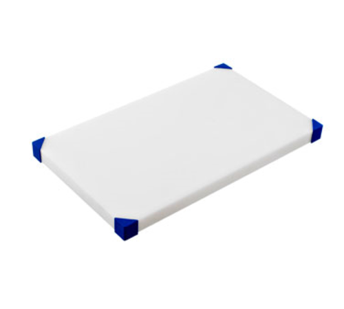 Araven Cutting Board, 19-7/8" x 12" x 1-3/8", high density polyethylene, white with blue color coded non-slip rubber permanent corners, both sides useable, HACCP compliant