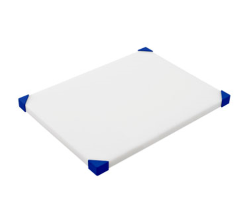 Araven Cutting Board, 15-7/8" x 12" x 7/8", high density polyethylene, white with blue color coded non-slip rubber permanent corners, both sides useable, HACCP compliant