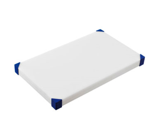 Araven Cutting Board, 23-3/4" x 15-7/8" x 1-3/8", high density polyethylene, white with blue color coded non-slip rubber permanent corners, both sides useable, HACCP compliant