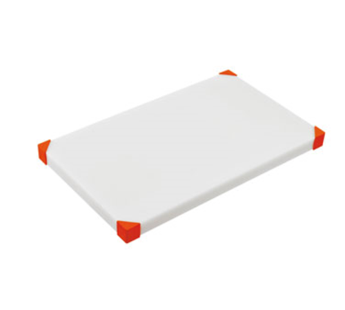 Araven Cutting Board, 23-3/4" x 15-7/8" x 7/8", high density polyethylene, white with red color coded non-slip rubber permanent corners, both sides useable, HACCP compliant