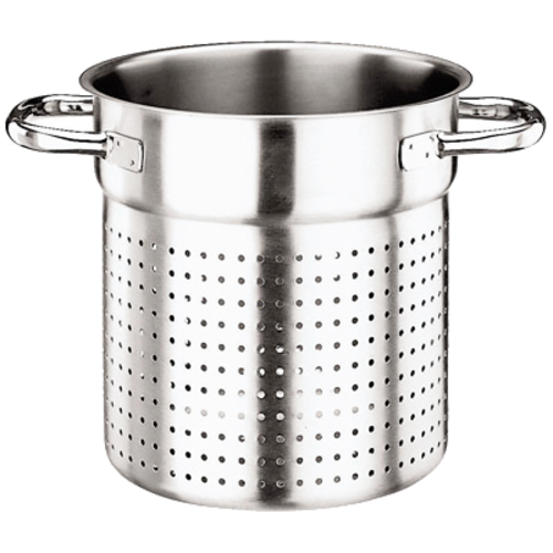 Stock Pot Colander, 9-1/2" dia. x 10-3/8"H, stainless steel sandwiched around aluminum plate, induction ready, dual welded handles, Paderno, Grand Gourmet, NSF