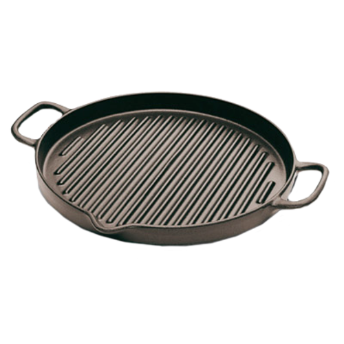 Grill, 10-1/4" dia., round, heavily grooved twice enameled cast iron construction surface, cast iron handles, Paderno, Chasseur