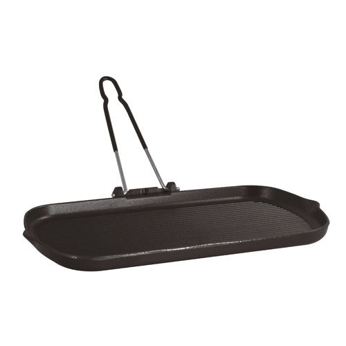Grill, 14-1/4"L x 8-1/8"W, rectangular, spouts on each side, heavy grooved twice enameled cast iron construction surface, stainless steel handle, Paderno, Chasseur (Special Order Item)